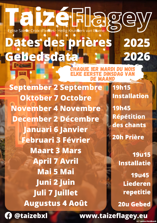 Bienvenue sur le site de la prière avec chants de Taizé à Flagey (Ixelles-Bruxelles).